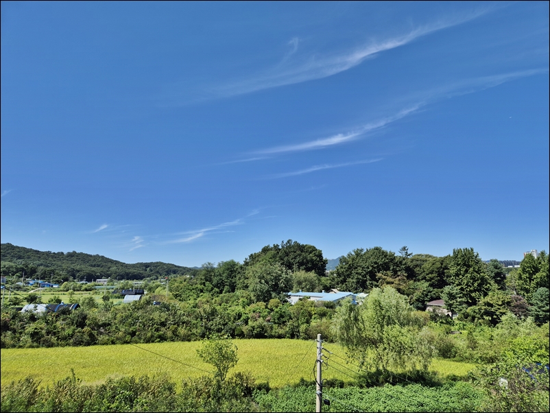 호수도 보이고 아파트단지도 보이고 또 벼가 익어가는 논 밭도 보인다.