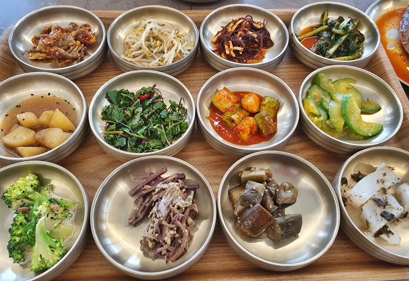 반찬 가짓수가 이렇게 많지만 양이 적어 남기지 않고 다 먹었다.