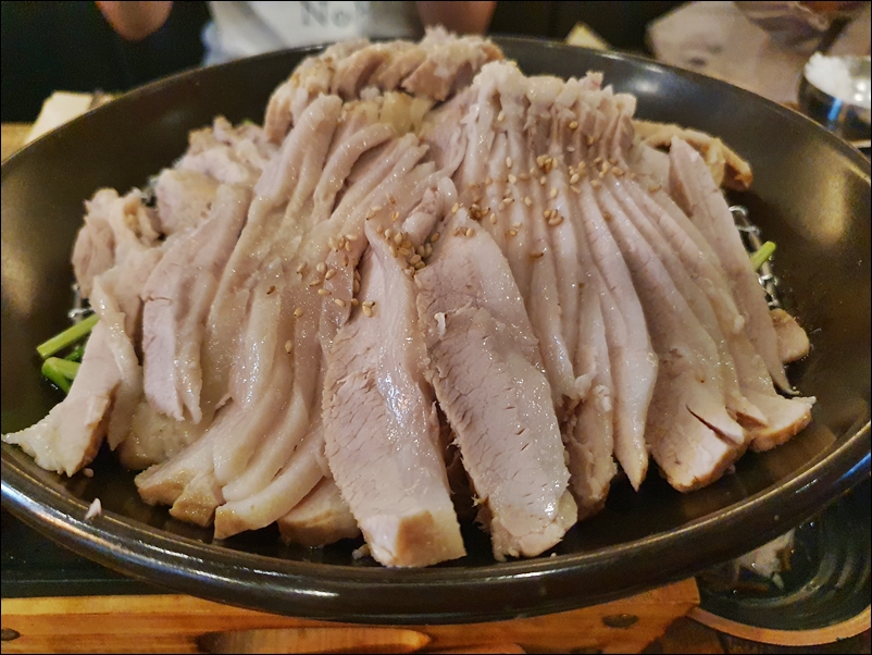 이건 슈육인데 좀 색다르게 썰어져 있다.