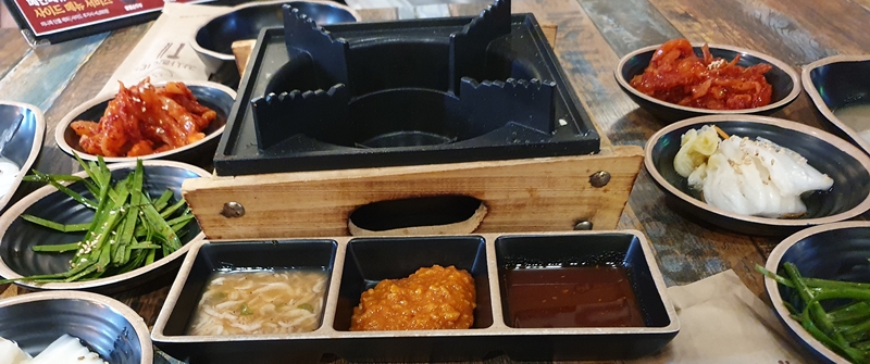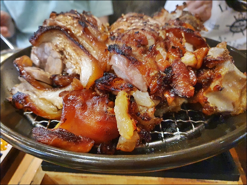 저 불판 위에어 족발과 수육을 불 켜고 올려 놓아줘서 다 먹을 때까지