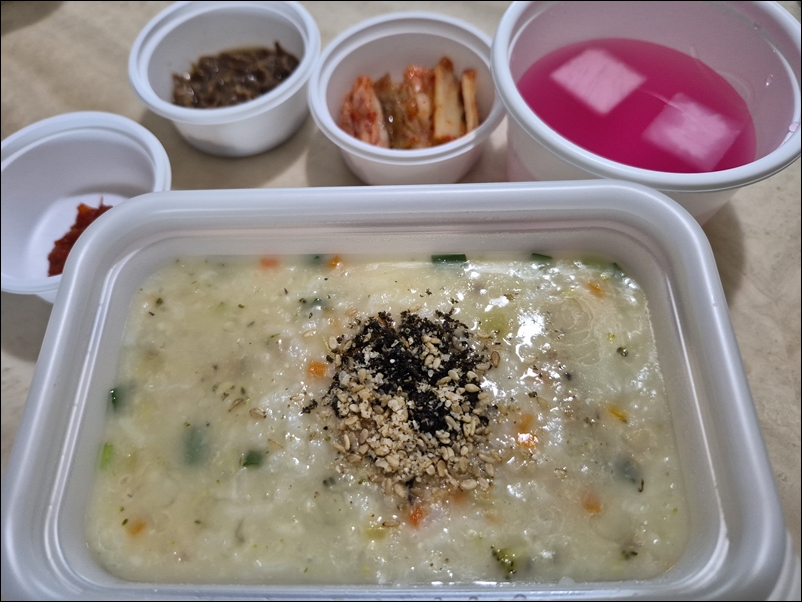 연일 잘 먹어서 오늘 점심은 본죽에서 야채죽을 사 와서 요양사와