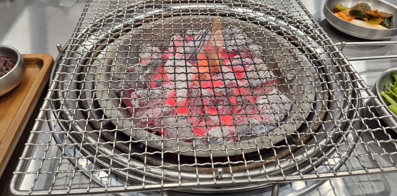이글이글 불판이 놓이니 따뜻해서 좋다.