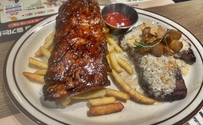 왼쪽 큰 건 돼지고기 등뼈구이다. 오른쪽은 소고기다.