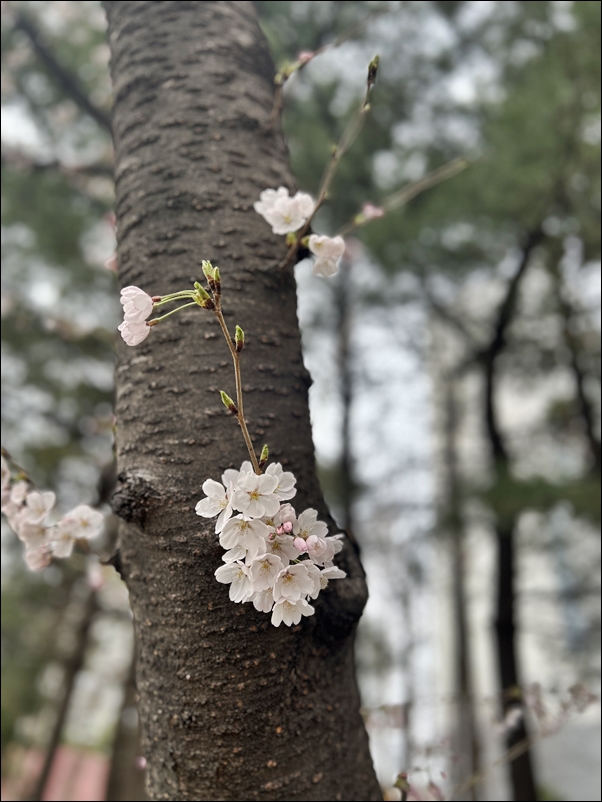 하루에도 몇 번씩 베란다에서 내려다보며 벚꽃이 피었나 하고